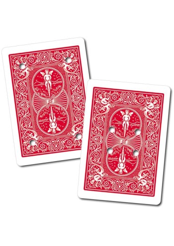 Muestra el reverso de una carta con cuatro agujeros en las cuatro esquinas... sin ilusiones ópticas ni de ningún otro tipo, son reales.