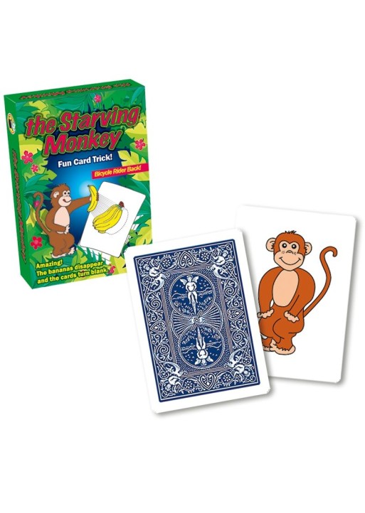 Se muestran cuatro cartas: una tiene el dibujo de un mono, mientras que las otras, un racimo de plátanos. La mona se coloca sobre un racimo, pero es tremendamente glotona, así que se lo come todo, dejando la carta completamente en blanco. Lo mismo ocurre, de vez en cuando, con todos los racimos: se come todos los plátanos y las cartas quedan completamente en blanco. ¡Al final, el mono engordará desmesuradamente!