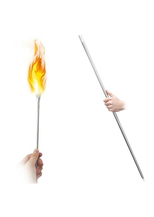 Muestra una antorcha encendida al público y, en un abrir y cerrar de ojos, ¡la llama se convierte en un hermoso bastón!