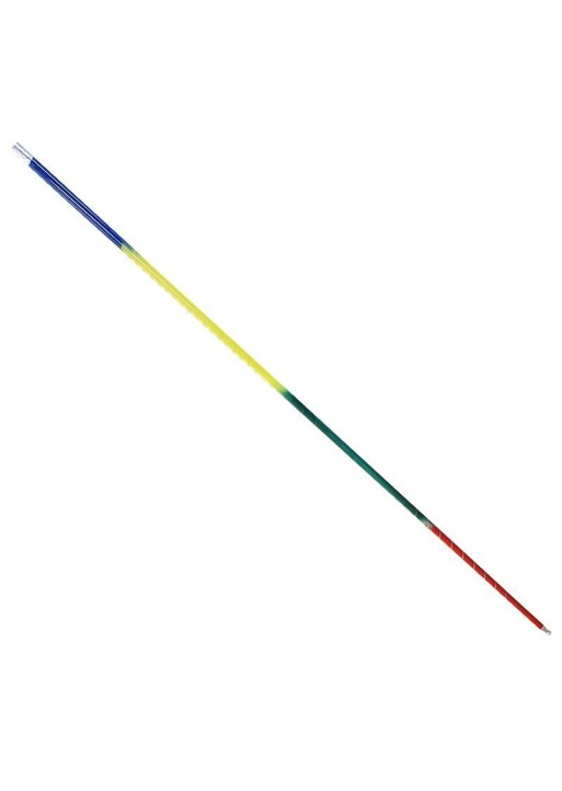 • El bastón es de color arcoíris y está hecho de acero brillante.